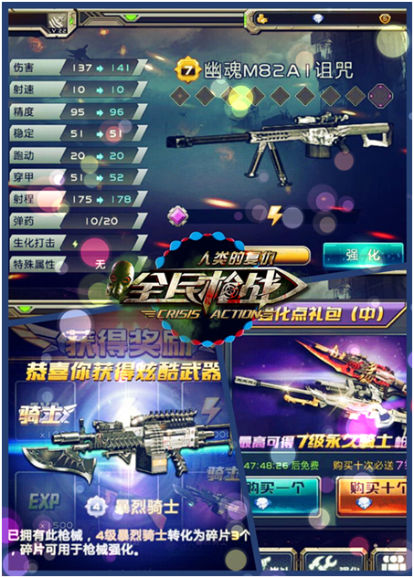 全民槍?xiě)?zhàn)》新版本中加入了增強(qiáng)版槍械強(qiáng)化改裝玩法,收集槍械碎片合成特定槍械,騎士系列、生化系列等20余種槍械皆可合成,為你的軍火庫(kù)添磚加瓦,輕松應(yīng)對(duì)不同的...
